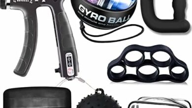Kit d’entraînement pour muscler les mains, avant-bras et doigts : pince poignée ajustable, hand gripper, exerciceur de doigts, gyroscopique, anneau et balle anti-stress.