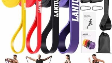 Ensemble de 4 élastiques de musculation avec sac d’ancrage – Idéal pour l’entraînement de fitness, pilates et yoga