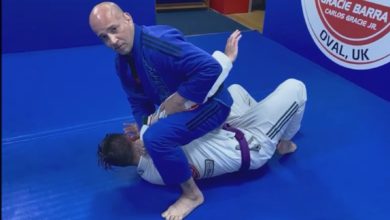 Prof. Carriello com sua técnica da montada. Foto: Reproduction Professeur da nossa GMI Gracie Barra Oval, à Londres, Eduardo Carriello…